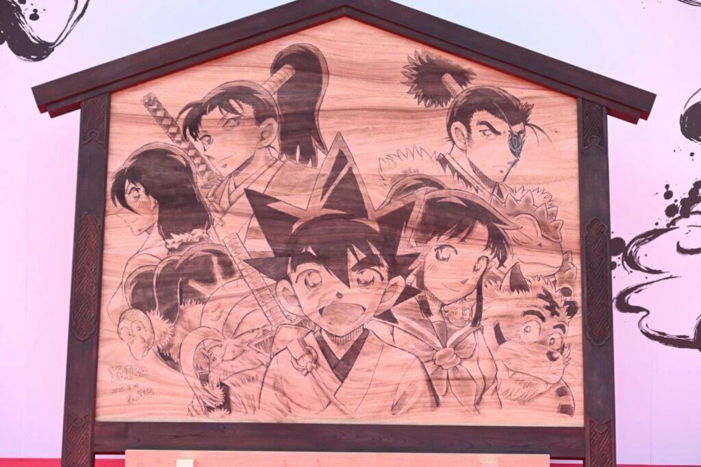 L’œuvre, illustrée aux marqueurs par Aoyama lui-même, a été dévoilée le 18 août 2025 en présence du duo comique Gerrardon et du directeur du temple, Yujun Moriyama. Le mangaka a confié qu’il avait dû travailler sur la table sans toucher les bords de l’ema, qui présentent de délicates gravures.