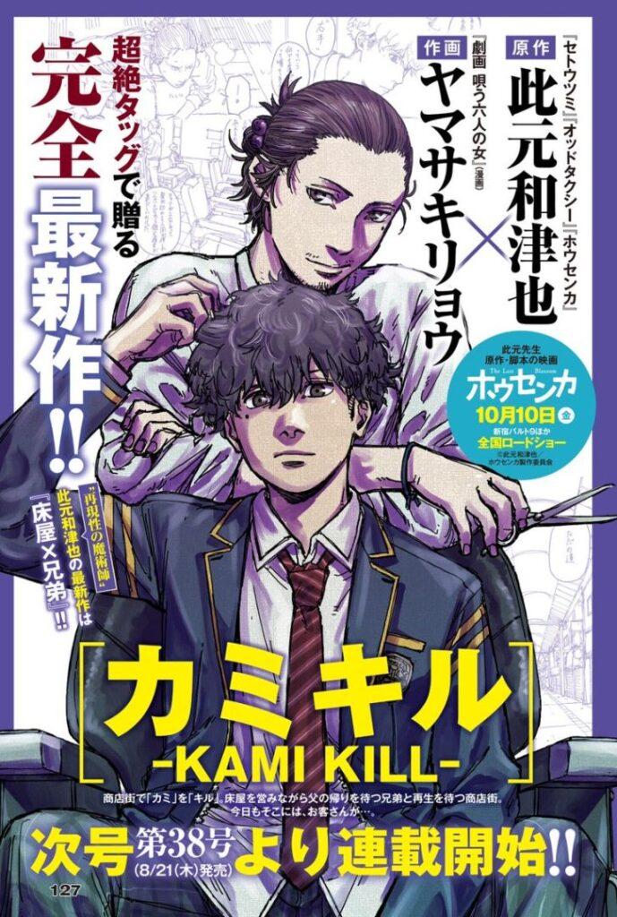 Le titre Kami Kill est un jeu de mots avec l’expression japonaise « kami kiru », qui signifie « couper les cheveux ». L’histoire suivra deux frères qui tiennent un salon de coiffure dans un quartier commerçant en déclin. En attendant le retour de leur père, ils se battent pour faire revivre le quartier et maintenir l’entreprise familiale à flot. La prémisse suggère une narration émotionnelle avec des touches de drame et une réflexion sur les liens familiaux et la résilience.